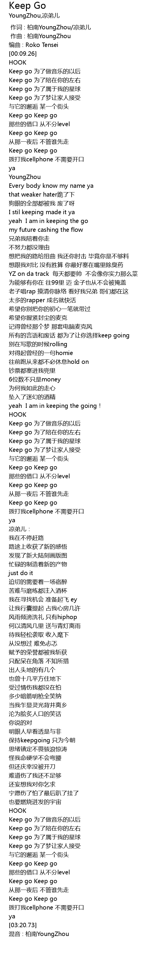 | [02:52.23] | Keep go wèi le zuò yīn yuè de yǐ hòu |