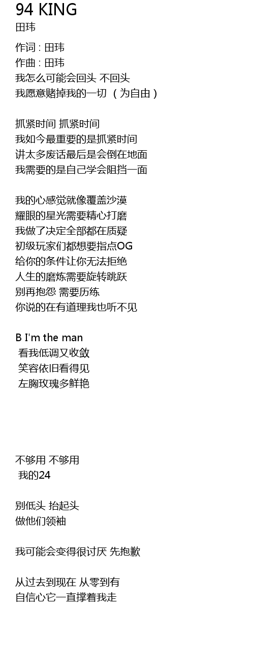 | 歌曲 | 94 KING |
