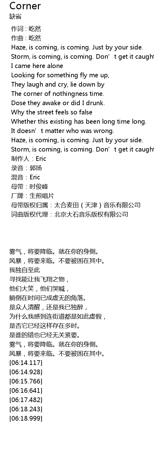| [06:15.766] | 混音:Eric |