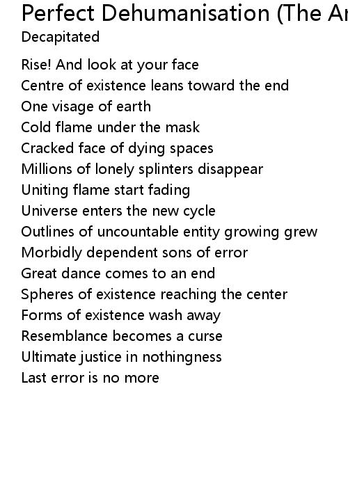 | 歌曲 | Perfect Dehumanisation (The Answer) |