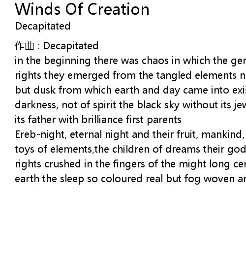 | Ereb-night, eternal night and their fruit, mankind, constrains the tribe the toys of elements,the children of dreams their gods are only illusions human rights crushed in the fingers of the might long centuries the sleep of mother earth the sleep so coloured real but fog woven and awakening will come from dusk |