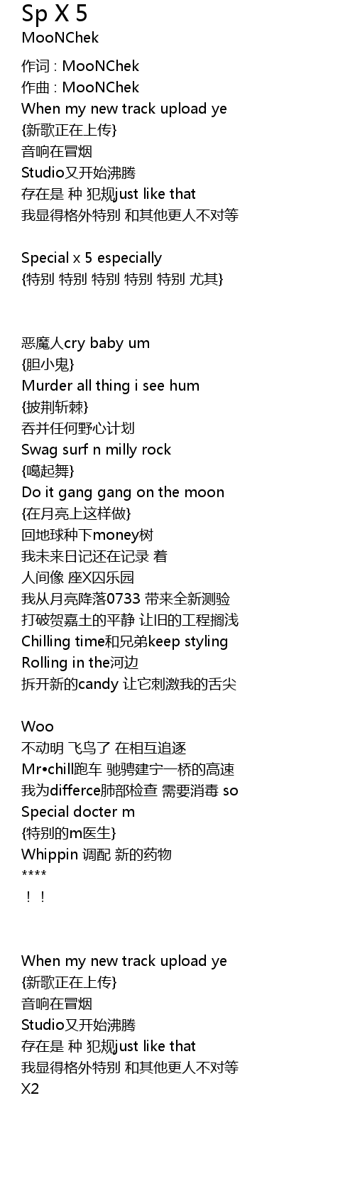 | 作词 : MooNChek | |