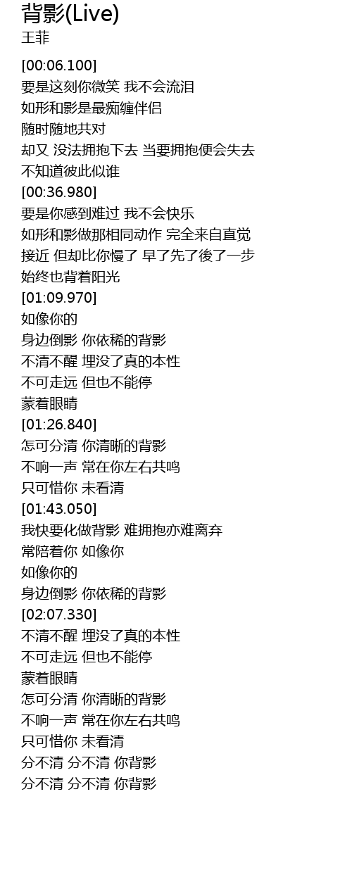 | [02:44.040] | fēn bù qīng fēn bù qīng nǐ bèi yǐng |