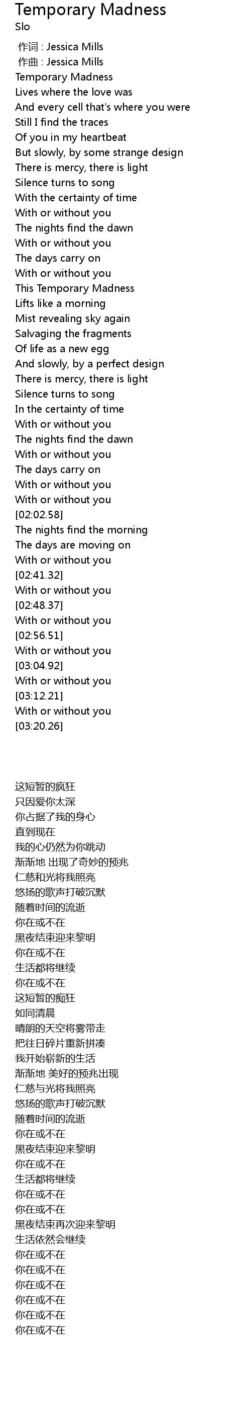| [00:01.000] | zuò qǔ : Jessica Mills |