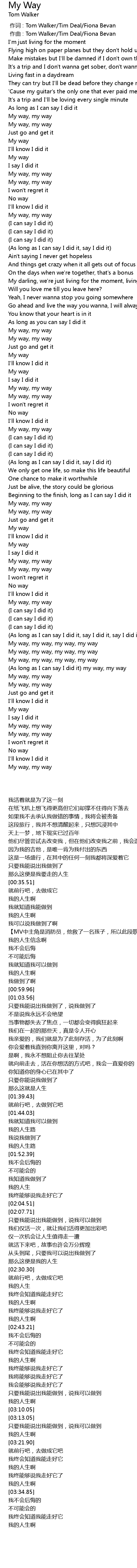 | [03:15.68] | As long as I can say I did it my way, my way |