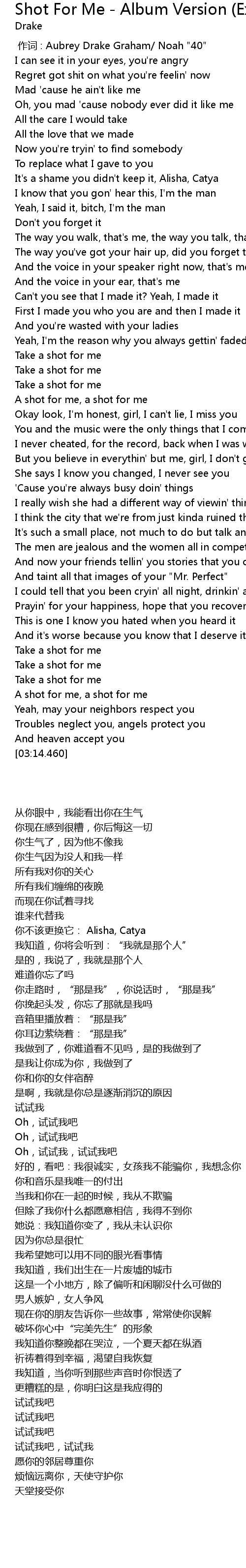 | [01:32.780] | A shot for me, a shot for me |
