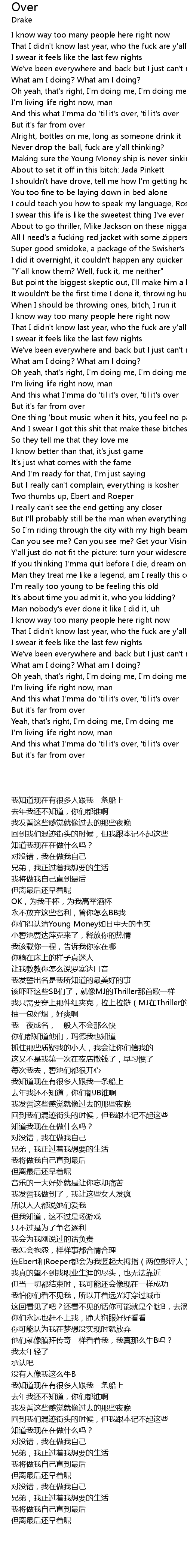 And this what I'mma do 'til it's over, 'til it's over |