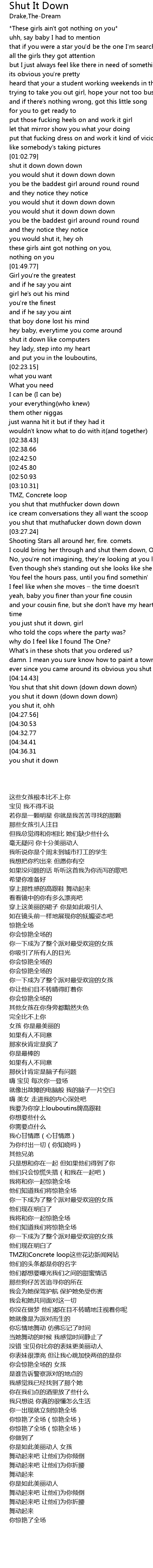 | [02:58.17][02:42.50] | they know we shut it down down down |