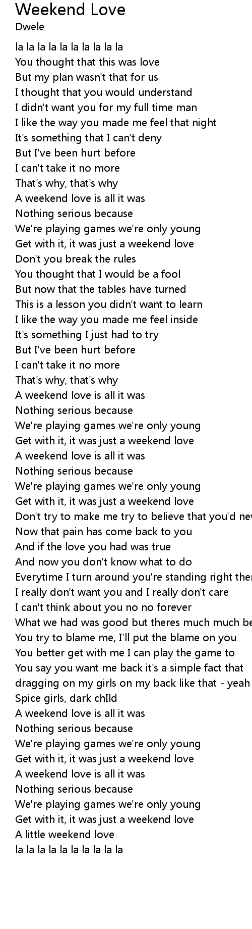 A weekend love is all it was |