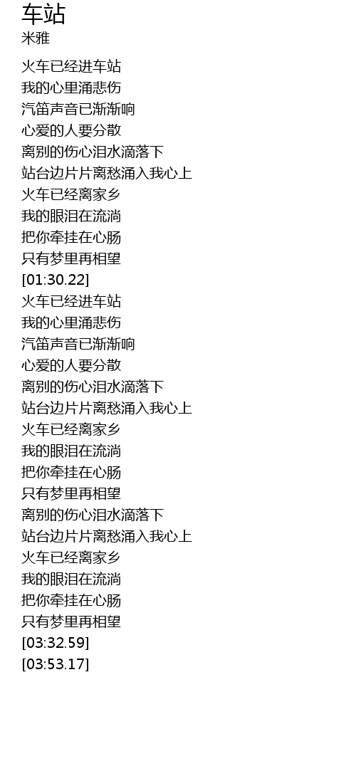 | [03:00.23] | 站台边片片离愁涌入我心上 |