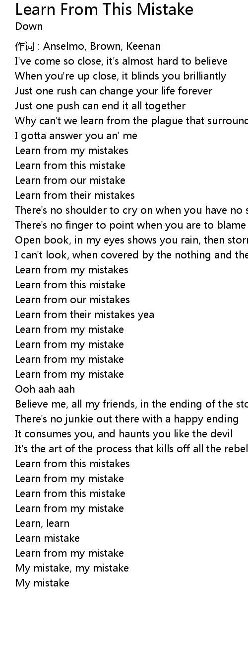| 歌曲 | Learn From This Mistake |