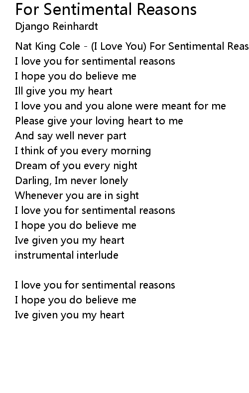 I love you for sentimental reasons