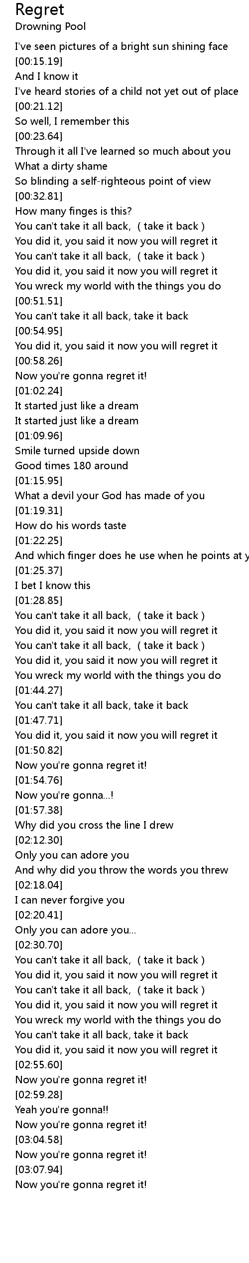| [00:44.41] | You did it, you said it now you will regret it |