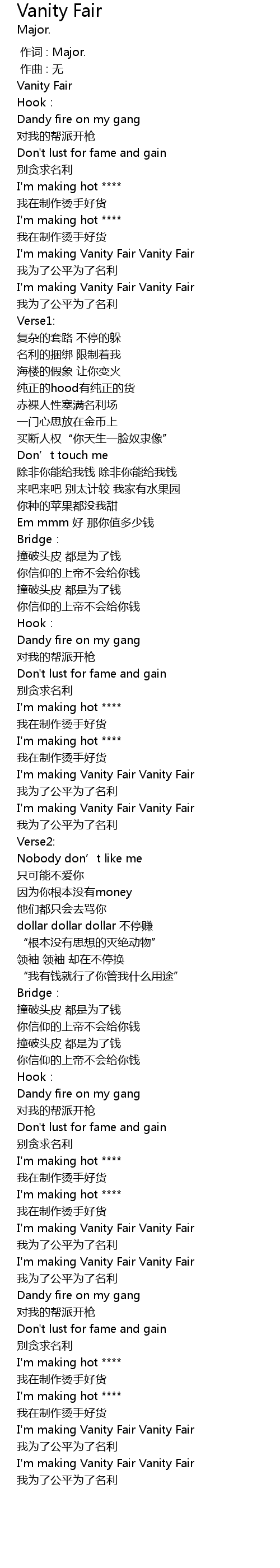 | [03:00.511] | I' m making Vanity Fair Vanity Fair |