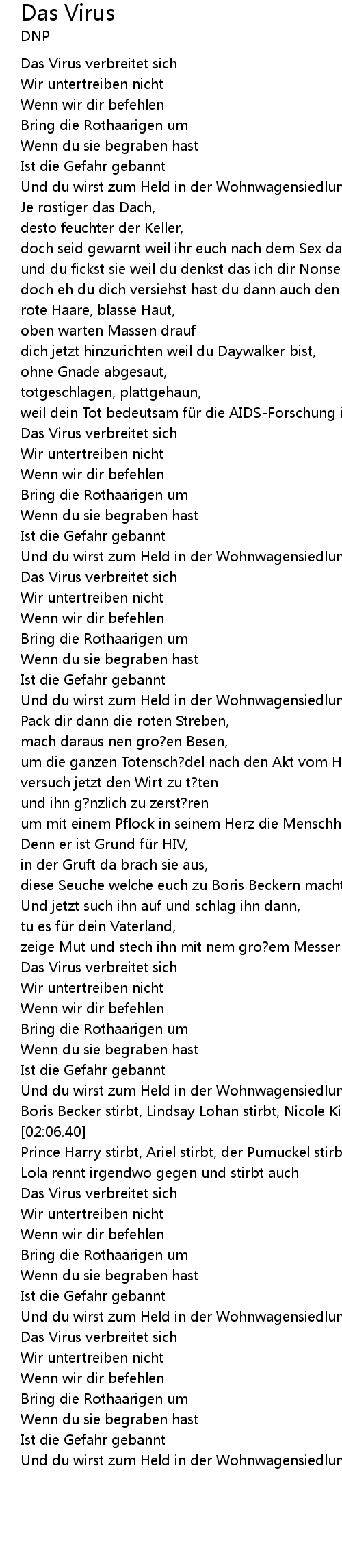 | [01:35.52] | Denn er ist Grund fü r HIV, |