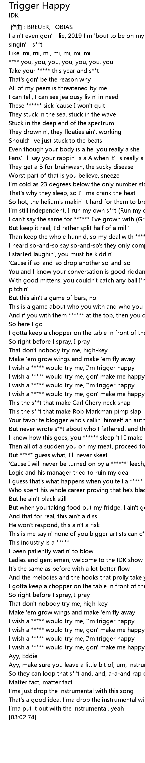 | [02:39.92] | I wish a ***** would try me, I'm trigger happy |