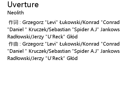 | [00:00.000] | 作曲 : Grzegorz "Levi" Łukowski/Konrad "Conrad" Białas/Daniel "Daniel " Kruczek/Sebastian "Spider A.J" Jankowski/Tomasz "Yashin" Radłowski/Jerzy "U'Reck" Głód |