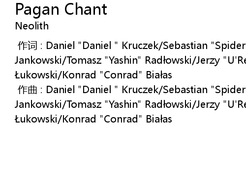 | [00:00.000] | 作曲 : Daniel "Daniel " Kruczek/Sebastian "Spider A.J" Jankowski/Tomasz "Yashin" Radłowski/Jerzy "U'Reck" Głód/Grzegorz "Levi" Łukowski/Konrad "Conrad" Białas |