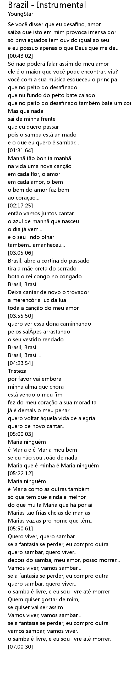 | [03:18.47] | Brasil, abre a cortina do passado |