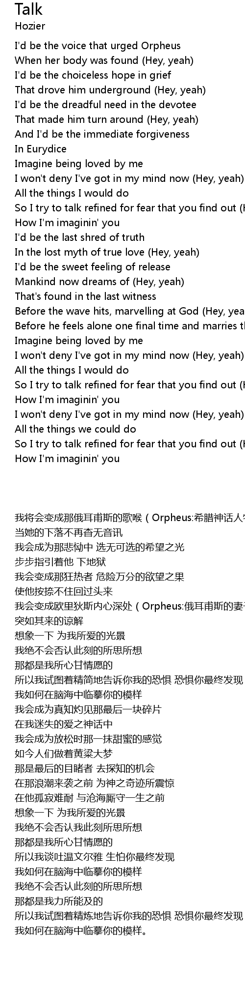I'd be the voice that urged Orpheus |