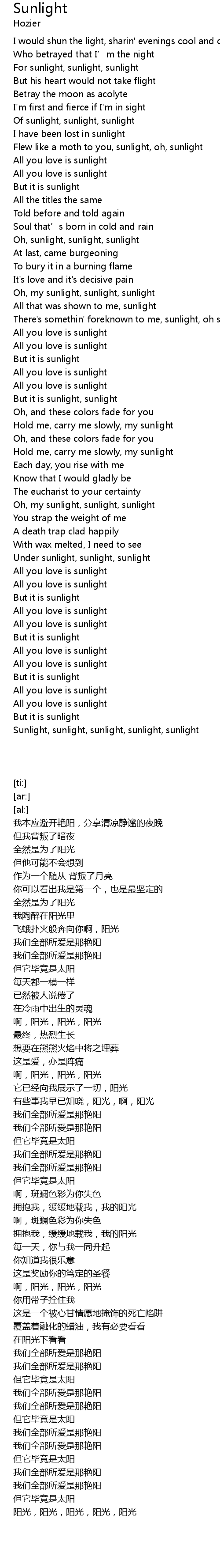| [03:55.38] | Sunlight, sunlight, sunlight, sunlight, sunlight |