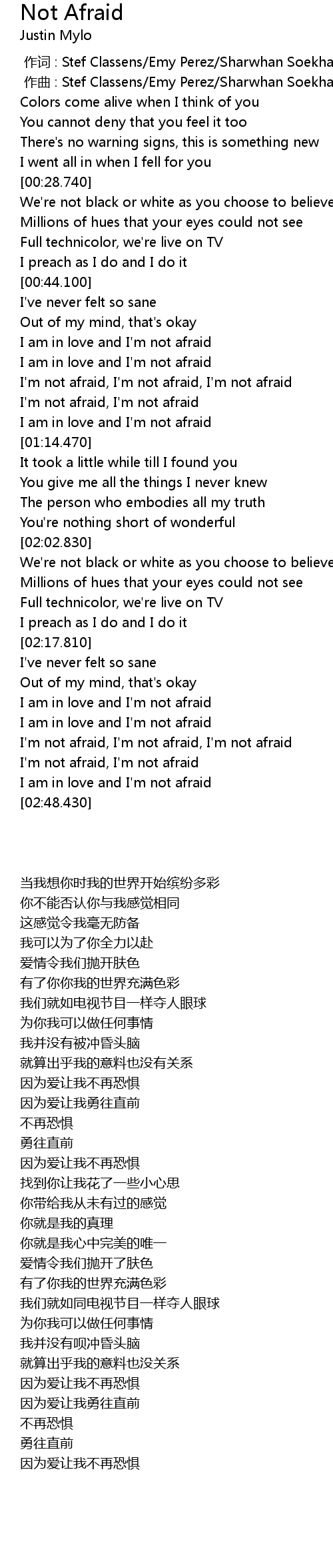 | [02:40.200] | I' m not afraid, I' m not afraid |
