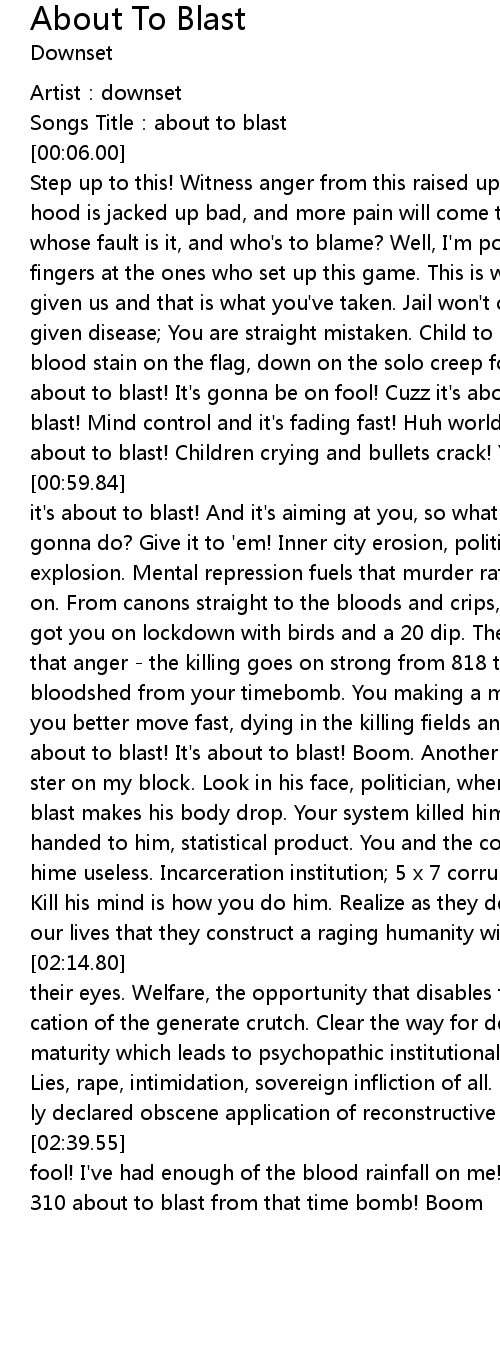 | [00:44.61] | about to blast! It' s gonna be on fool! Cuzz it' s about to |