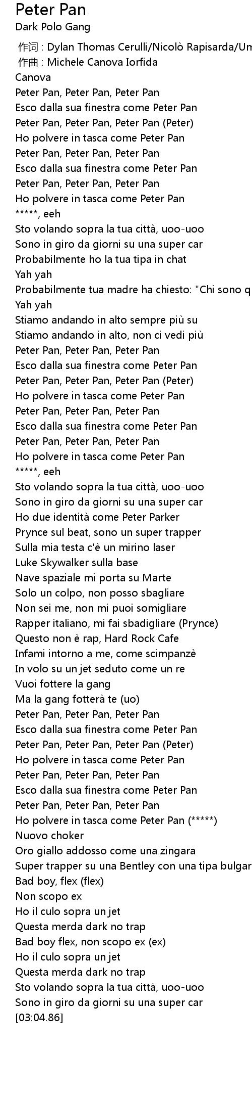| [02:23.74] | Peter Pan, Peter Pan, Peter Pan |