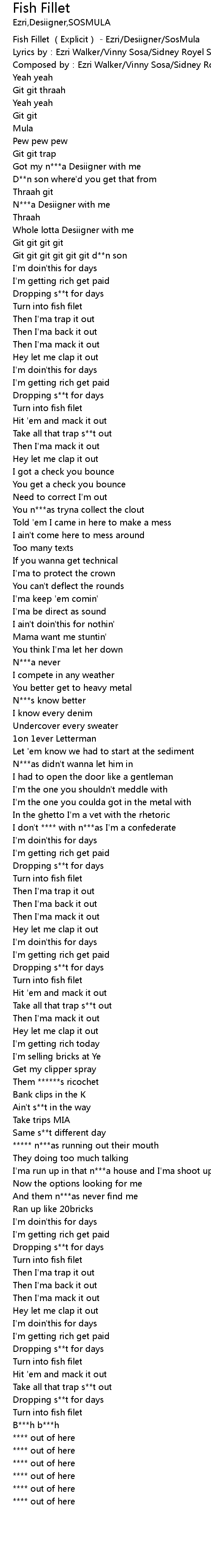 | [00:00.100] | Fish Fillet Explicit Ezri Desiigner SosMula |