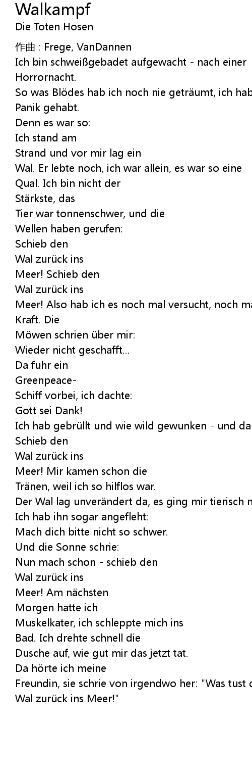 | Der Wal lag unver ndert da, es ging mir tierisch nah. | |