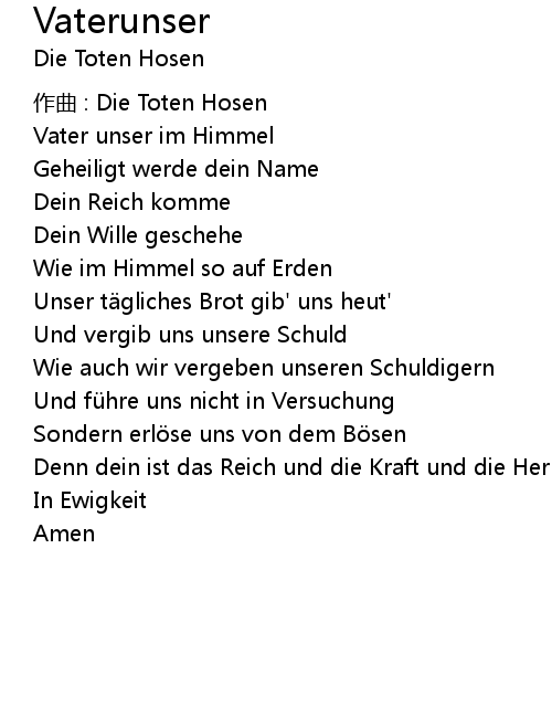 | 歌曲 | Vaterunser |