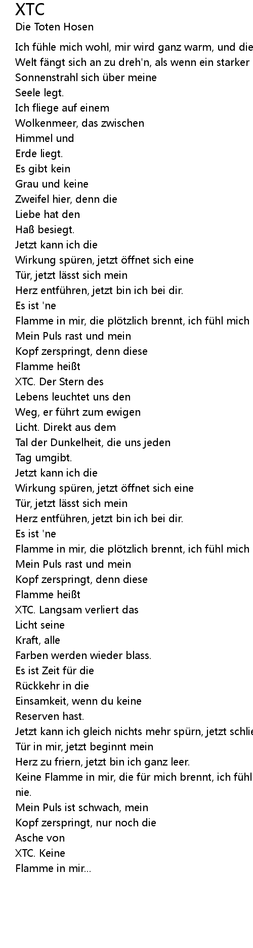 | Flamme in mir, die pl tzlich brennt, ich fü hl mich mal wieder so gut wie nie. | |