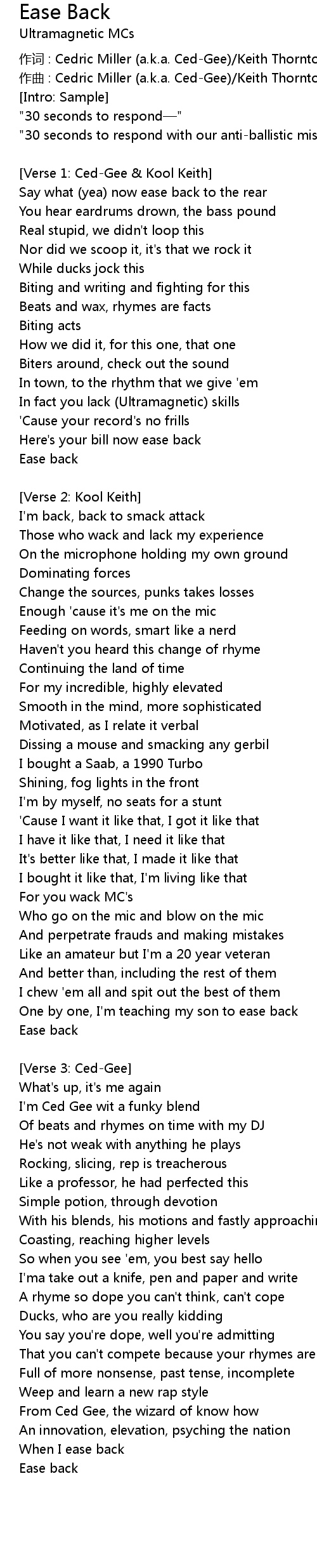 | 作词 : Cedric Miller (a.k.a. Ced-Gee)/Keith Thornton (a.k.a. Kool Keith) | |