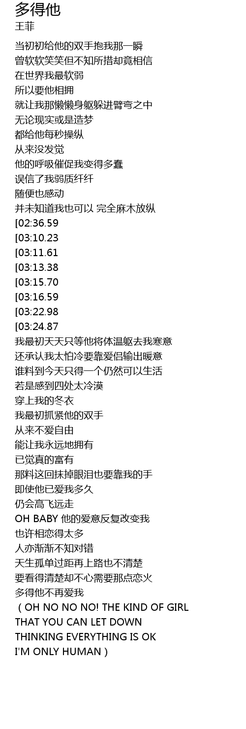 | [03:56.82] | 多得他不再爱我 |