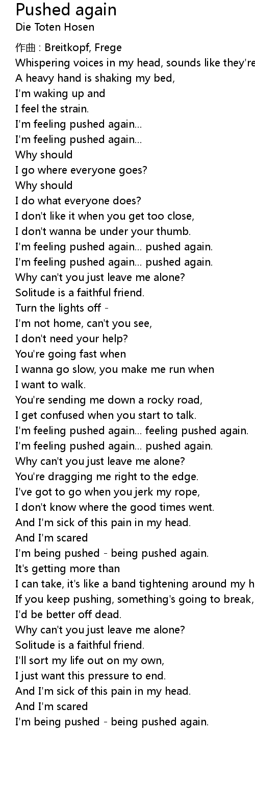 | If you keep pushing, something' s going to break, it' s making me think, | |