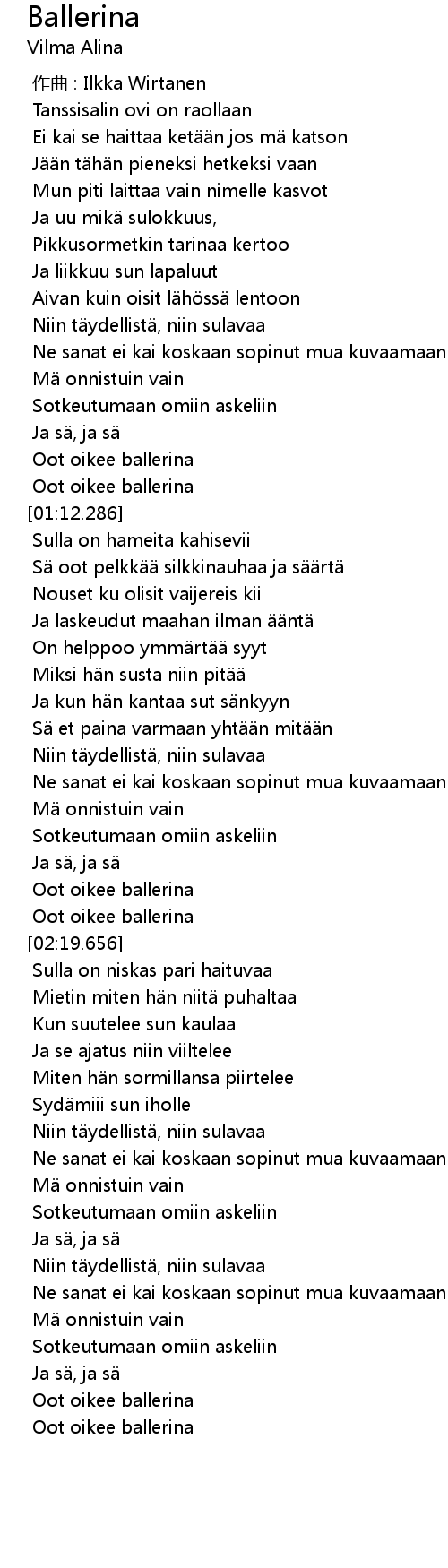 | [00:46.463] | Ne sanat ei kai koskaan sopinut mua kuvaamaan |