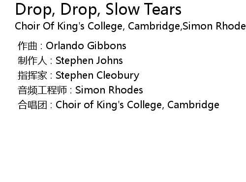 | [00:00.000] | 合唱团 : Choir of King's College, Cambridge |