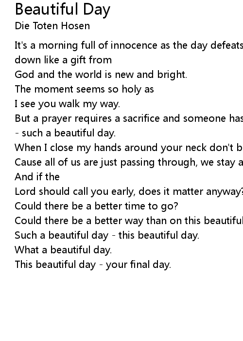 But a prayer requires a sacrifice and someone has to pay for this beautiful day - such a beautiful day. |