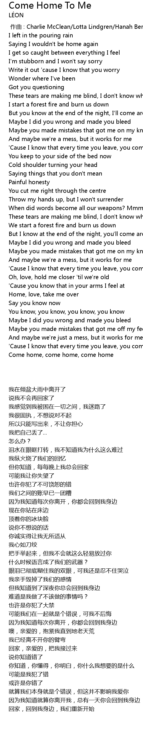 | [02:28.35] | 'Cause I know that every time you leave, you come home |