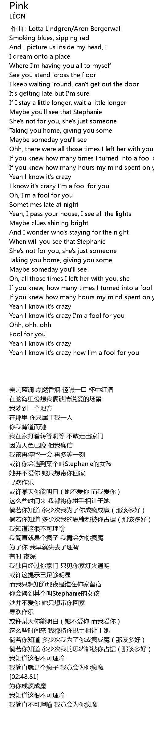 | [02:39.33] | Yeah I know it' s crazy I' m a fool for you |