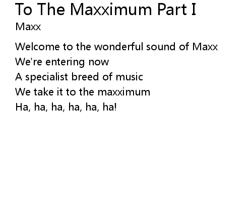 To The Maxximum Part I 歌词