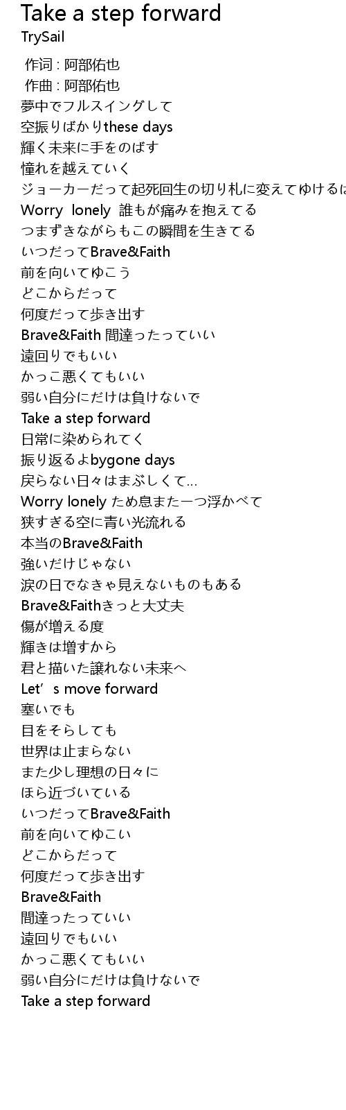 | [00:57.504] | いつだってBrave&Faith |