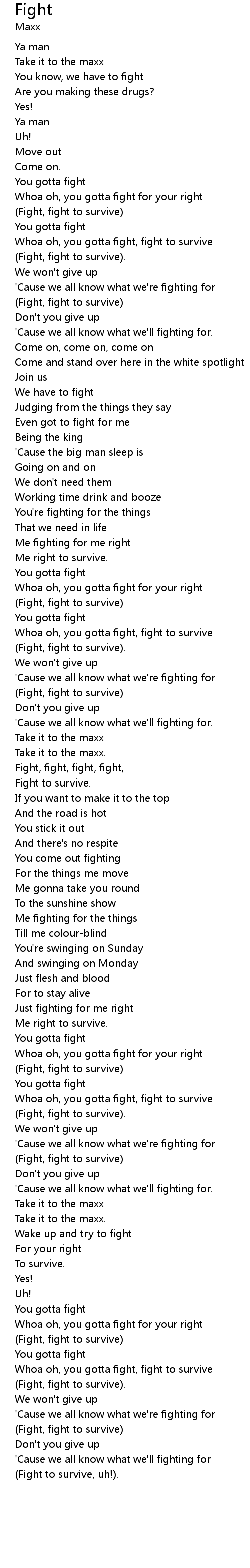 Whoa oh, you gotta fight, fight to survive