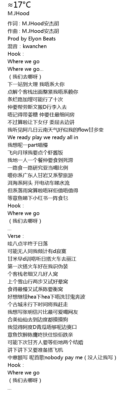 | 作词 : M.JHood安杰胡 | |
