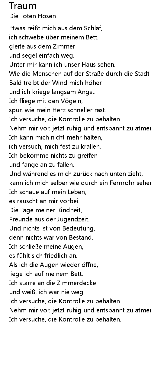 | ich schwebe ü ber meinem Bett, | |