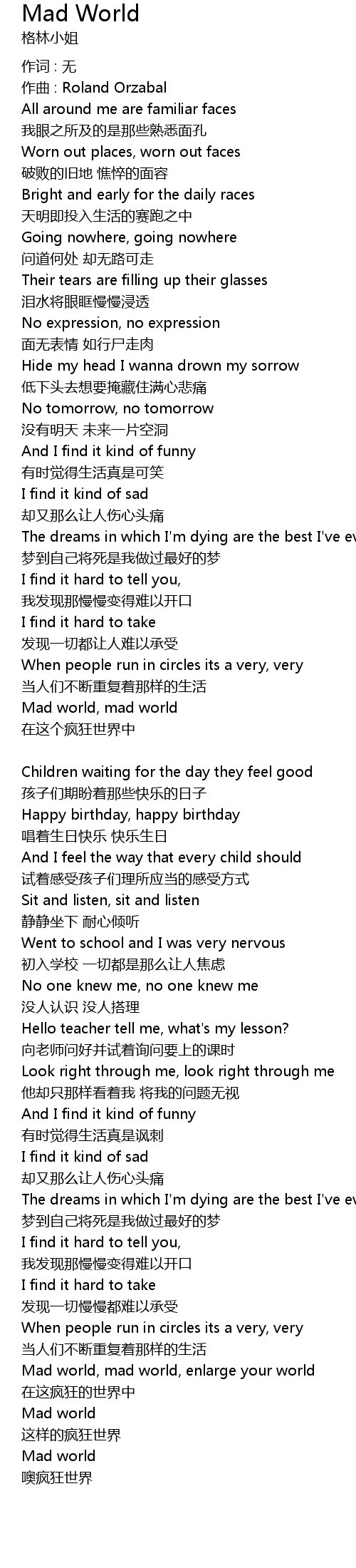 | Mad world | |