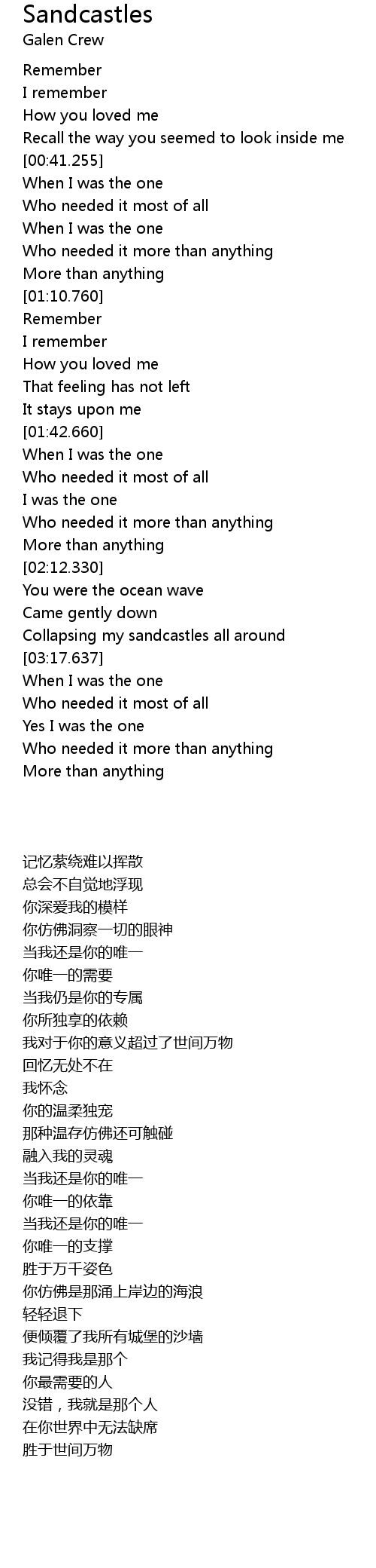 Collapsing my sandcastles all around |