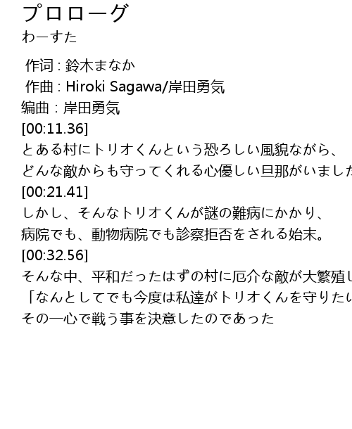 | [00:11.37] | とある村にトリオくんという恐ろしい風貌ながら、 |