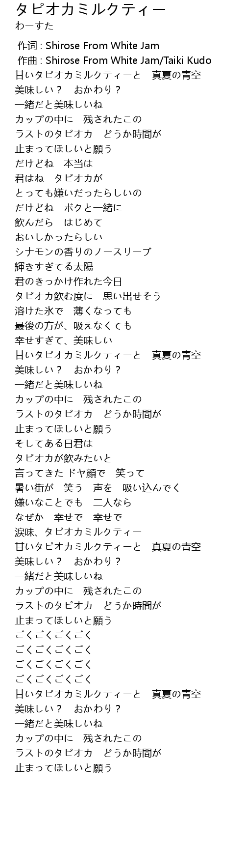 | [02:10.71] | 涙味、タピオカミルクティー |