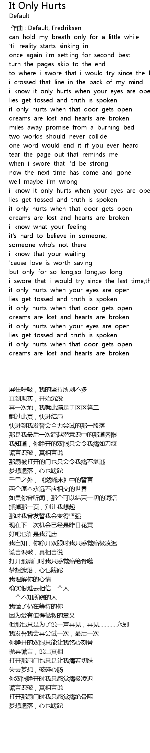 | 歌曲 | It Only Hurts |